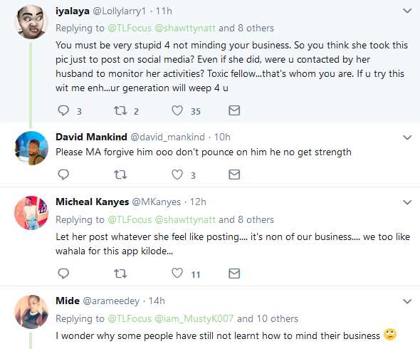 A Twitter user identified simply as TLFOCUS (@TLFocus), has been trailed with mixed reactions and criticisms after he was blasted by a woman, Bukola Wahab (@shawttynatt), who he had accused of wearing an indecent attire as a married woman.
