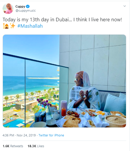 The daughter of billionaire business man, Femi Otedola has been teasing her fans on her Instagram stories and on her twitter timeline with pictures of her experience in Dubai.