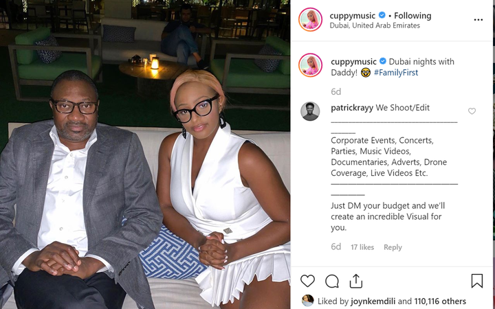 Cuppy who has not hidden her interest in having a child of her own also shared pictures with her father, Femi Otedola as she gave him a first taste of being a grand father with her new baby lion.