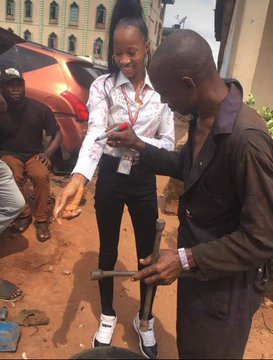 At a time when we haveore "slay queens" than the real queens, when everyone suddenly become "rich" on social media and no one is poor, a time when everyone is claiming what they are not especially young ladies. A proud daughter of a mechanic father has done unexpected, as she ran to her father's workshop immediately after her last paper.