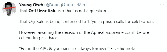While some applaud the EFCC for trying the former governor, others are of the opinion that the sentencing is fake. They argue that Kalu will appeal the sentencing at the Supreme court and it will be upturned.
