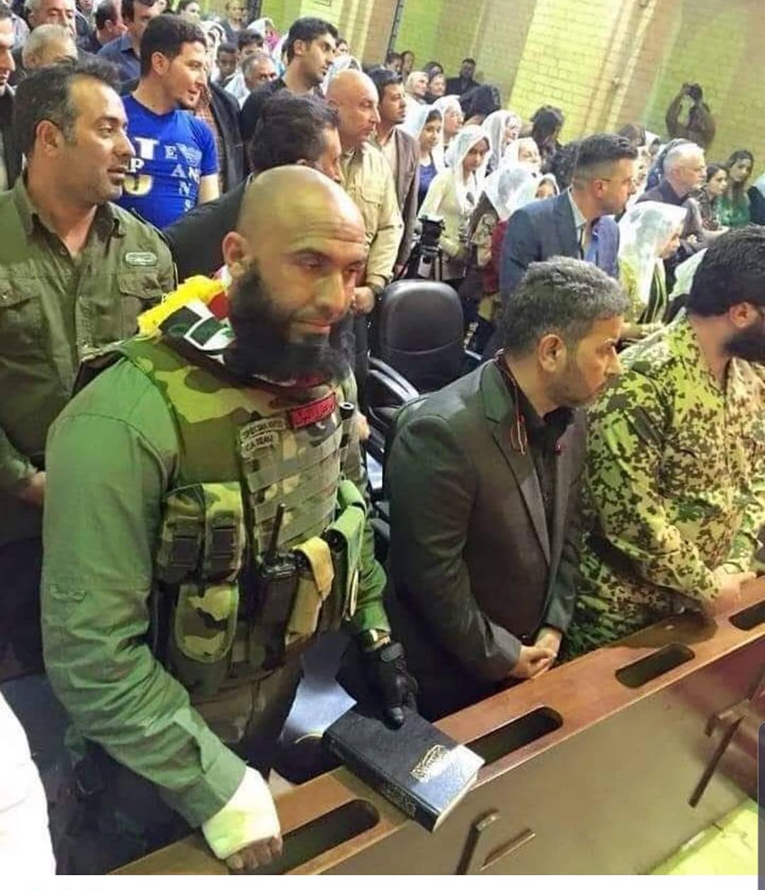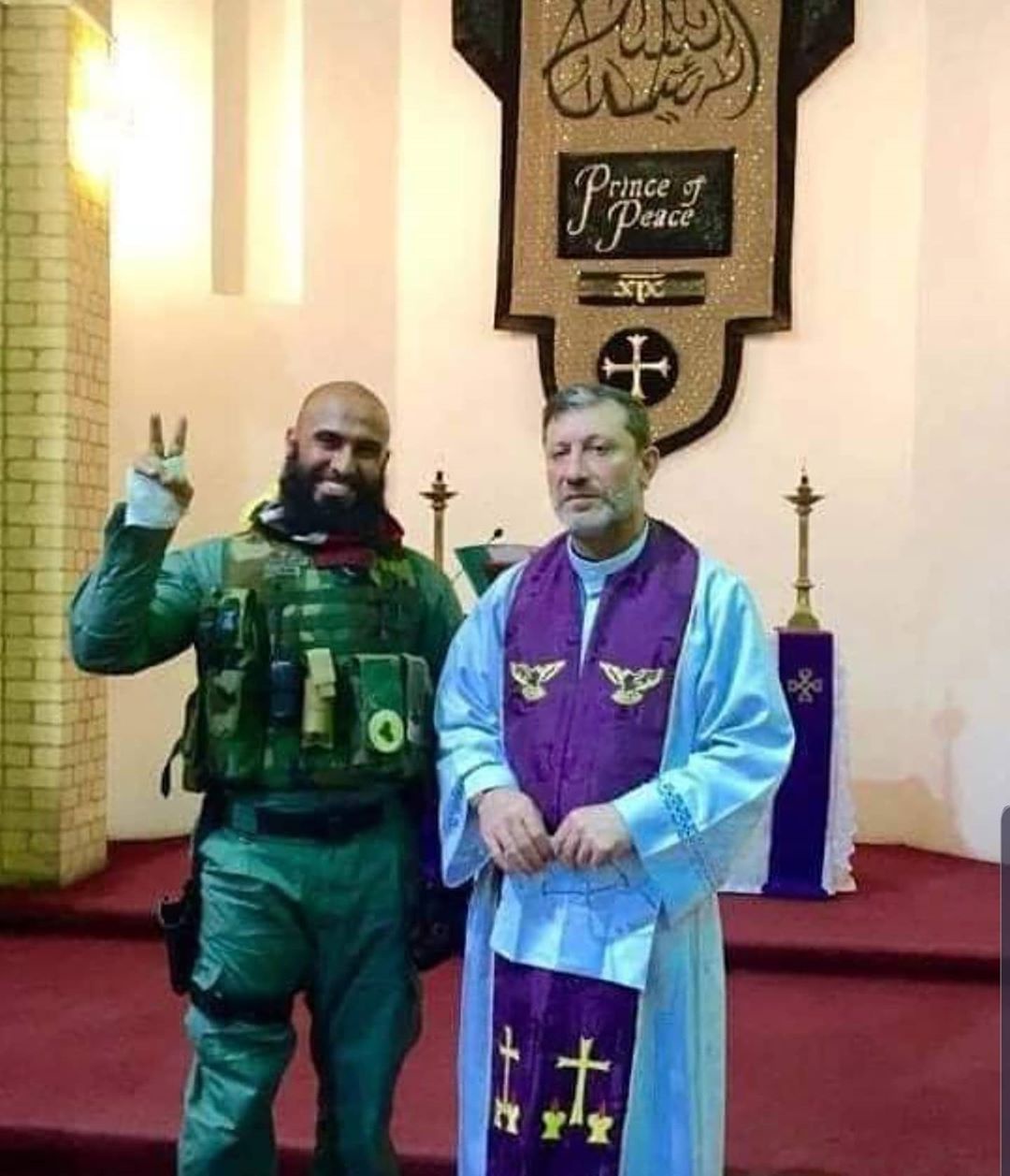 The Shia muslim fighter Abu Azrael "Angel of Death" is what they call him, stand in solidarity with the Christans of Iraq and visited the St. George Church in Baghdad, Iraq.
