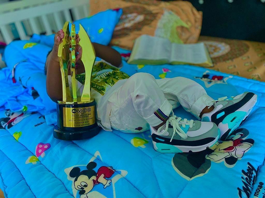 While receiving her award, Toyin Abraham on stage, appreciated Kolawole for being an amazing husband and best friend, after which she dedicated the plaque to her son, Ire.