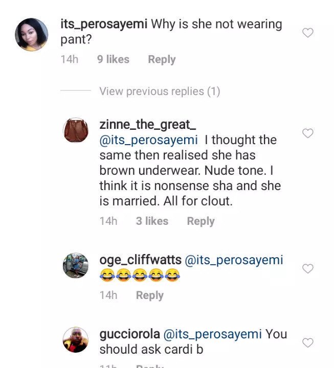 Gbemi who took to her Instagram account and share her amazing and generous outfit to AMVCA event last night got the worst comment as Nigerians analyze her outfit and find out she wasn’t wearing a pant.