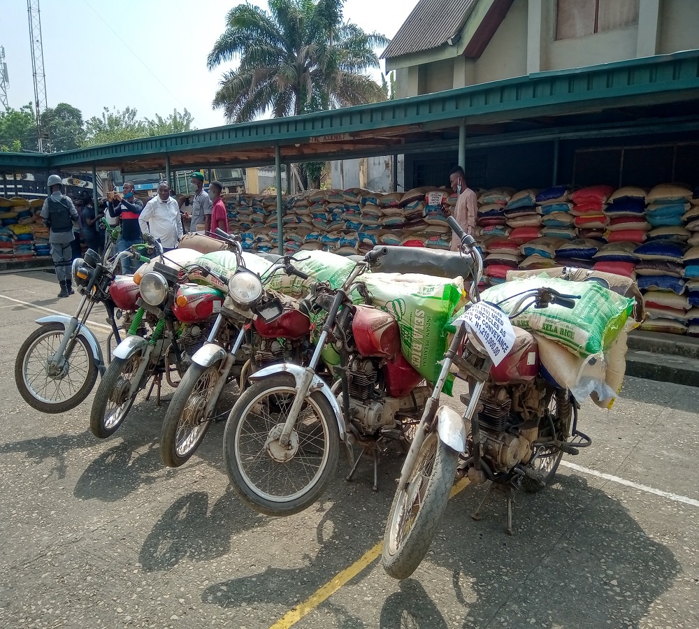 The seized items included nine Toyota vehicles valued at over three hundred million, ten motorcycles, valued at over one million naira, bags of foreign rice, valued at one hundred and twenty eight naira.